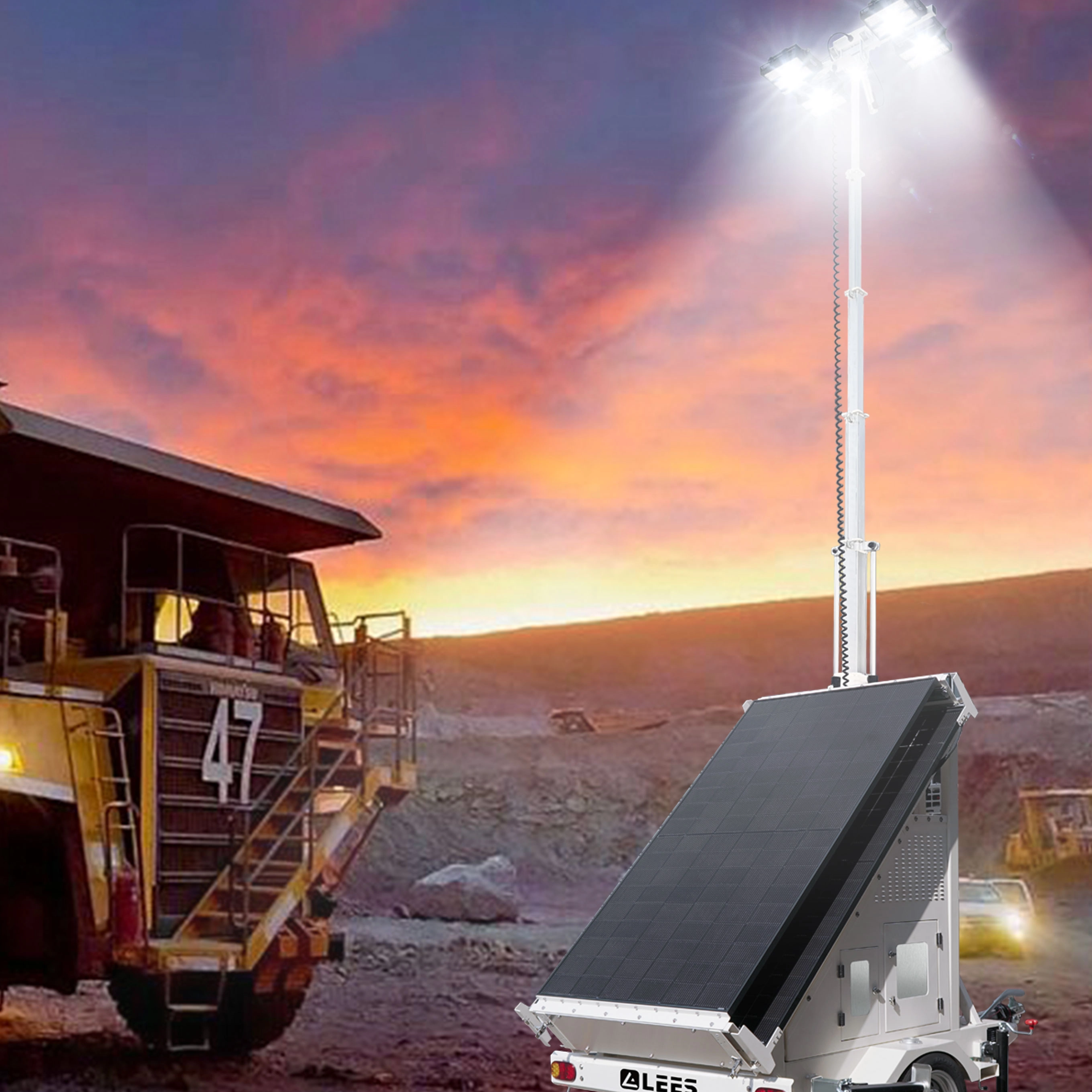 客户作为本地区租赁行业的重要企业,年租赁业务量显著,服务覆盖矿山、工厂、港口及电网应急供电与照明等多个场景。该区域电力基础设施相对不足,尤其在应急照明与夜间持久照明方面存在明显短板。基于客户对夜间照明能力提升的需求,能电公司为其提供了一批太阳能灯塔作为应急照明解决方案。
